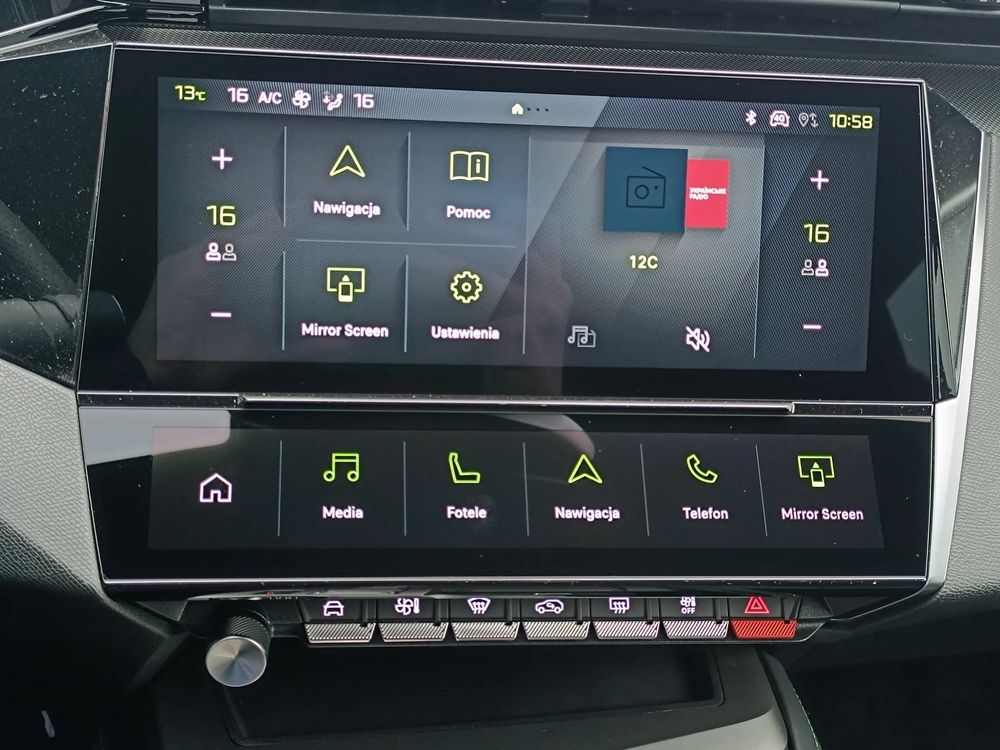 - Centralny ekran dotykowy 10" z programowalnymi wirtualnymi