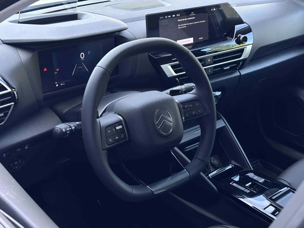 • Deska rozdzielcza, pokrycie z teksturą inspirowaną logo Citroën, kartki nawiewów lakierowane w kolorze Siderite Grey, dodatkowy głosiniczek centralny