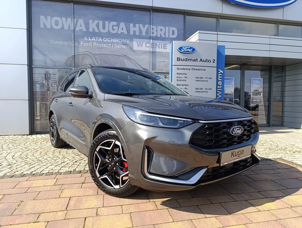 FORD KUGA, wersja wyposażania ST-Line X + bogate dodatkowe wyposażanie fabryczne, Hybryda 2.5 FHEV 180 KM, skrzynia automatyczna eCVT, napęd na przednią oś, nadwozie SUV.
