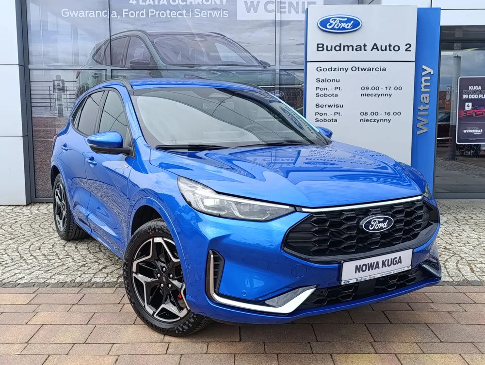 FORD KUGA, wersja wyposażania ST-Line X + bogate dodatkowe wyposażanie fabryczne, Hybryda 2.5 FHEV 180 KM, skrzynia automatyczna eCVT, napęd na przednią oś, nadwozie SUV.