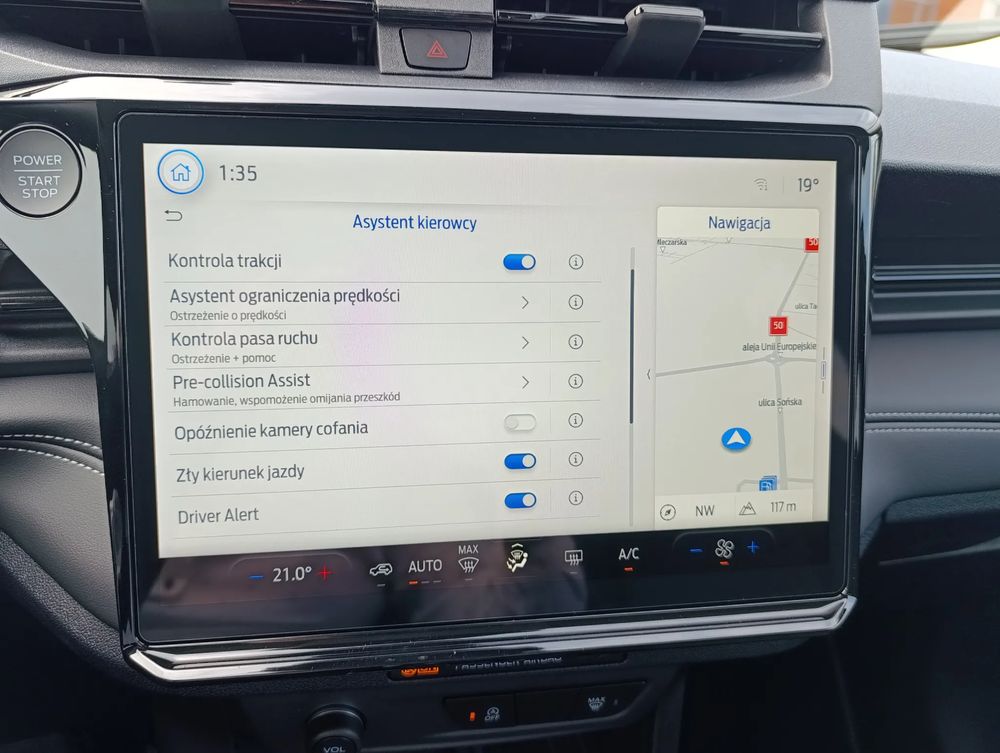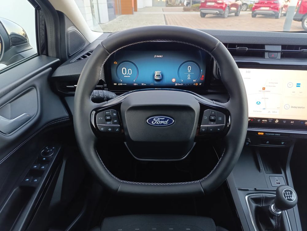 • Nawigacja satelitarna z systemem SYNC 4, DAB – dotykowy ekran 12”, bezprzewodowa obsługa Android Auto i Apple CarPlay, Bluetooth, obsługa głosowa, 6 głośników, 2xUSB, sterowanie na kierownicy