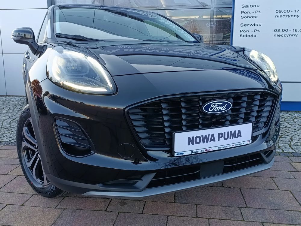 FORD PUMA, wersja wyposażania Titanium + dodatkowe wyposażanie fabryczne, benzyna 1.0 EcoBoost HYBRID 125 KM, skrzynia manualna, napęd na przód, nadwozie SUV.