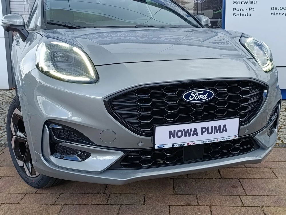 FORD PUMA, wersja wyposażania ST-Line X + dodatkowe wyposażanie fabryczne, benzyna 1.0 EcoBoost HYBRID 125 KM, skrzynia automatyczna PowerShift A7, napęd na przód, nadwozie SUV.
