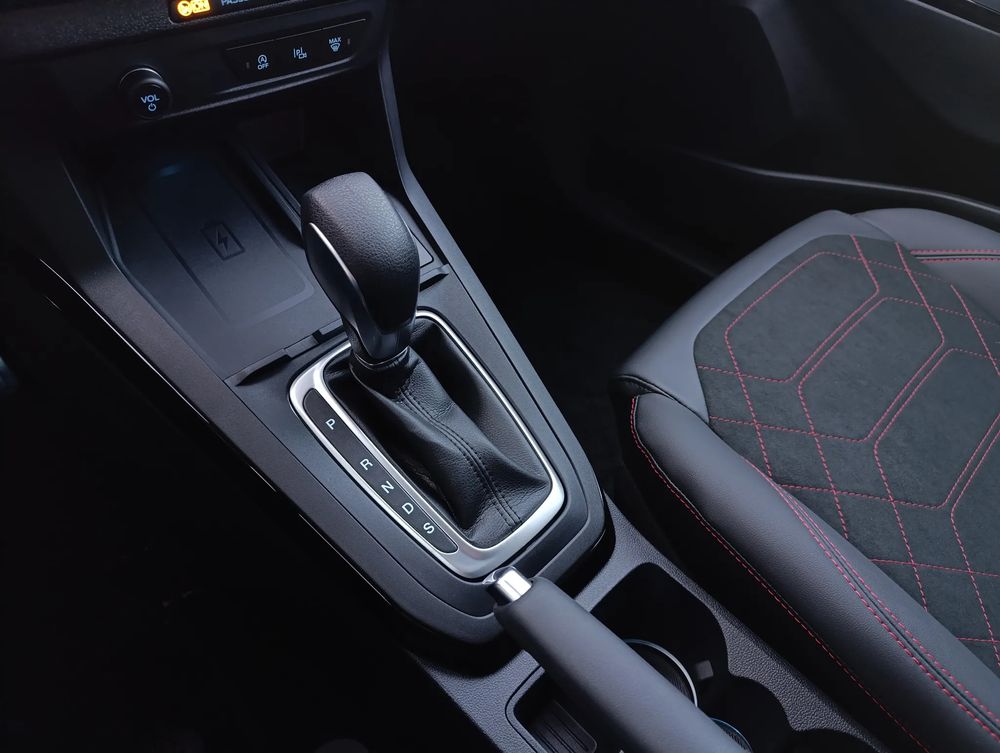 • Uchwyt dźwigni biegów wykończony skórą ekologiczną Sensico