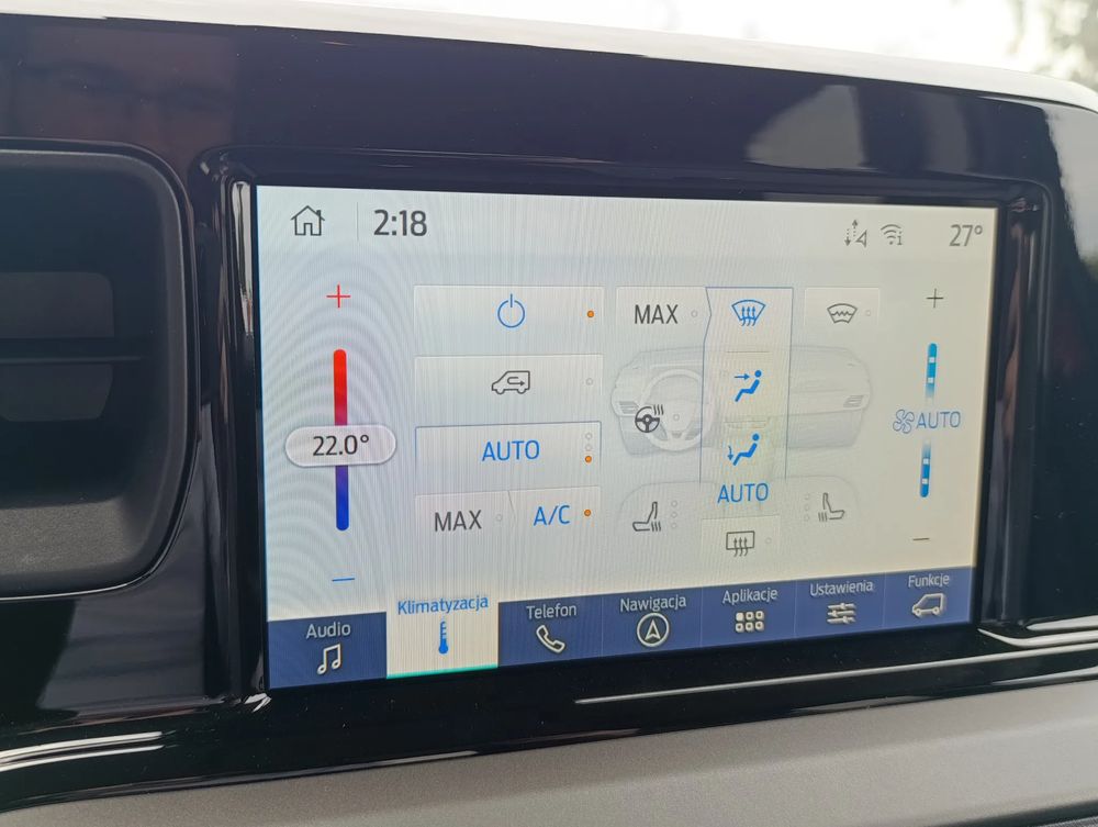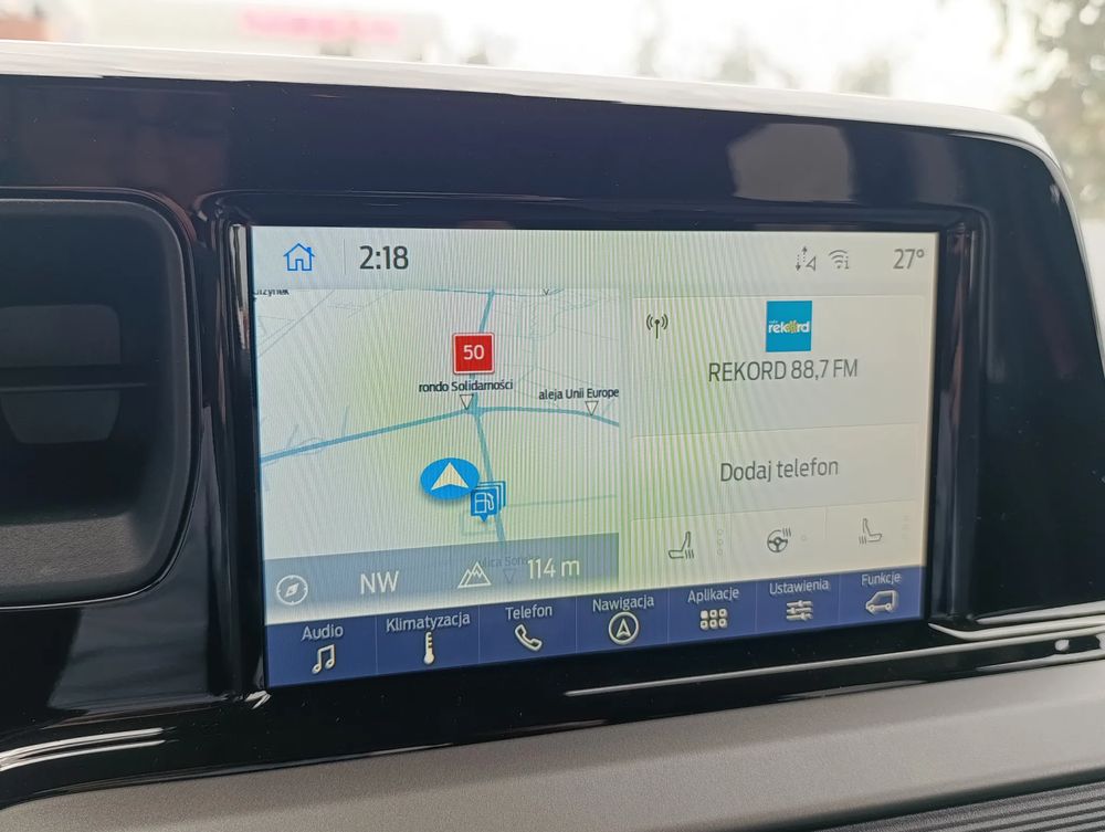• Radio cyfrowe FM/DAB z 8” ekranem dotykowym, Ford SYNC4 z bezprzewodową obsługą Android Auto i Apple CarPlay, Bluetooth ze sterowanie głosowym, USB, 4 głośniki