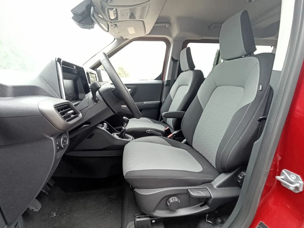• Układ foteli przednich 1+1 (fotel kierowcy z regulacją w 4.kierunkach, pochylaniem oparcia, podłokietnikiem i regulacją odcinka lędźwiowego; fotel pasażera z regulacją w 2.kierunkach i pochylaniem oparcia)