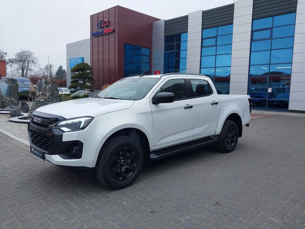 Budmat Auto Sp. z o.o. Autoryzowany dealer wielomarkowy: ISUZU, Nissan, Suzuki, Peugeot, Ford, Opel ma do zaoferowania samochód demonstracyjny ISUZU D-MAX DOUBLE CAB LSE A/T. (BIAŁY PERŁOWY); Silnik 1898 cm3, 120 kW (163 KM) EURO6; Maksymalny moment obrotowy 360 Nm przy 2000 - 2500 obr./min.; Dopuszczalna masa całkowita 3100 kg. Dopuszczalna masa całkowita zespołu pojazdów z przyczepą z hamulcem - 6000 kg. Rozstaw osi: 3 125 mm. PICK-UP 4x4. Przebieg 159 km. Data pierwszej rejestracji 17/07/2025. Wyposażenie LSE: AUDIO: Stacja multimedialna z ekranem o przekątnej 9 cali; Interfejs Android Auto / Apple CarPlay; Tuner cyfrowy DAB (Digital Audio Broadcasting); 8 głośników systemu audio; 2x Gniazdo USB-C z przodu; Gniazdo USB-C z tyłu; Kierownica multifunkcyjna; Zestaw głośnomówiący Bluetooth; Kolorowy wyświetlacz zegarów o przekątnej 7 cali; BEZPIECZEŃSTWO: System ograniczający skutki kolizji czołowych (FCW+AEB) z asystentem skrętu (Turn Assist); System ostrzegania o opuszczaniu pasa ruchu (LDW); System rozpoznawania znaków drogowych (TSR); Układ ABS z elektronicznym rozdziałem siły hamowania (EBD); System stabilizacji toru jazdy (ESC); System wspomagania ruszania na wzniesieniu (HSA); System kontroli prędkości zjazdu ze wzniesienia (HDC); System stablizacji toru jazdy przyczepy (TSC); System hamulca multikolizyjnego (MCB); System monitorowania martwego pola (BSM); System monitorowania ruchu poprzecznego z funkcją hamowania (RCTA+RCTB); System wspomagania utrzymania na pasie ruchu (LKAS+LDP); System wspomagający utrzymanie na pasie ruchu w sytuacjach awaryjnych (ELKA); System eCall; Immobilizer; Czołowe, boczne i kurtynowe poduszki powietrzne; Centralna poduszka powietrzna z przodu; Kolanowa poduszka powietrzna kierowcy; Wyłącznik czołowej poduszki powietrznej pasażera; Regulacja wysokości przednich pasów bezpieczeństwa; Przypomnienie o zapięciu pasów bezpieczeństwa z przodu; Przypomnienie o zapięciu pasów bezpieczeństwa z tyłu; Kamera cofania; Czujniki parkowania z tyłu; Czujniki parkowania z tyłu i z przodu; Alarm antykradzieżowy; System mocowania fotelików dziecięcych ISO-FIX (x2) z tyłu; Blokada dziecięca w drzwiach tylnych; KOŁA: Koło zapasowe z felgą stalową; System monitorowania ciśnienia powietrza w kołach (TPMS); Felgi aluminiowe 18-cali w kolorze metalizowanym szary mat z oponami 265/60R18; KOMFORT: Tempomat adaptacyjny; Wycieraczki szyby przedniej z czujnikiem deszczu; Wspomaganie układu kierowniczego; Regulacja kierownicy w dwóch płaszczyznach; Pokrętło do wyboru trybu pracy napędu 4x4; 4x uchwyt na napoje z przodu; Oświetlenie kabiny w podsufitce; Schowek na okulary w podsufitce; Filtr przeciwpyłkowy; System dostępu bezkluczykowego; Klimatyzacja automatyczna dwustrefowa; Nawiew dla pasażerów z tyłu; NA ZEWNĄTRZ: Zderzak przedni w kolorze nadwozia z elementami w kolorze ciemnoszarym metalizowanym; Zderzak tylny w kolorze nadwozia z elementami w kolorze ciemnoszarym metalizowanym; Atrapa chłodnicy w kolorze ciemnoszarym metalizowanym z chromowanym wykończeniem; Klamki zewnętrzne w kolorze ciemnoszarym metalizowanym; Obudowy lusterek zewnętrznych w kolorze ciemnoszarym metalizowanym; Lusterka zewnętrzne elektrycznie regulowane i podgrzewane; Elektrycznie składane lusterka zewnętrzne; Kierunkowskazy wbudowane w lusterka zewnętrzne; Zestaw osłon podwozia; Punkty do mocowania bagażu w przestrzeni ładunkowej (x4); Osłony przeciwbłotne z przodu i z tyłu; Stopnie boczne;Czarna okleina na słupku B; Reflektory przednie LED z samopoziomowaniem; Światła do jazdy dziennej LED; Automatyczne światła drogowe (AHB); Przednie reflektory przeciwmgielne LED; UKŁAD NAPĘDOWY: Silnik Diesla 1,9 163 KM / 360 Nm; System STOP/START; Napęd 4x4 z dołączaną osią przednią; Blokada tylnego mechanizmu różnicowego; WNĘTRZE: Skórzana tapicerka foteli w kolorze czarnym; Regulacja wysokości fotela kierowcy; Elektryczna regulacja podparcia odcinka lędźwiowego fotela kierowcy; Fotel kierowcy regulowany elektrycznie w 8 płaszczyznach; Podgrzewane fotele przednie; Zagłówki z przodu i z tyłu z regulacją wysokości; Skórzane obszycie kierownicy i gałki dźwigni zmiany biegów; Elektrycznie regulowane szyby przednie; Elektrycznie regulowane szyby tylne; Gniazdo 12V z przodu; Kieszenie w drzwiach przednich z uchwytem na 1,5 litrową butelkę; Kieszenie w drzwiach tylnych; Uchwyt do wsiadania z przodu (na słupku A); Uchwyt do wsiadania z tyłu (na słupku B); Zamykany schowek na podszybiu; Konsola centralna z przodu z podłokietnikiem; Centralny podłokietnik z uchwytem na napoje z tyłu; Kieszenie w oparciach foteli przednich; Kratki nawiewu wykończone czarnym błyszczącym materiałem (piano black); Osłony przeciwsłoneczne z lusterkiem i oświetleniem dla kierowcy i pasażera z przodu; Fotochromatyczne lusterko wsteczne; Oparcie tylnej kanapy dzielone i składane w proporcjach 60:40; Relingi dachowe w kolorze ciemnoszarym metalizowanym;