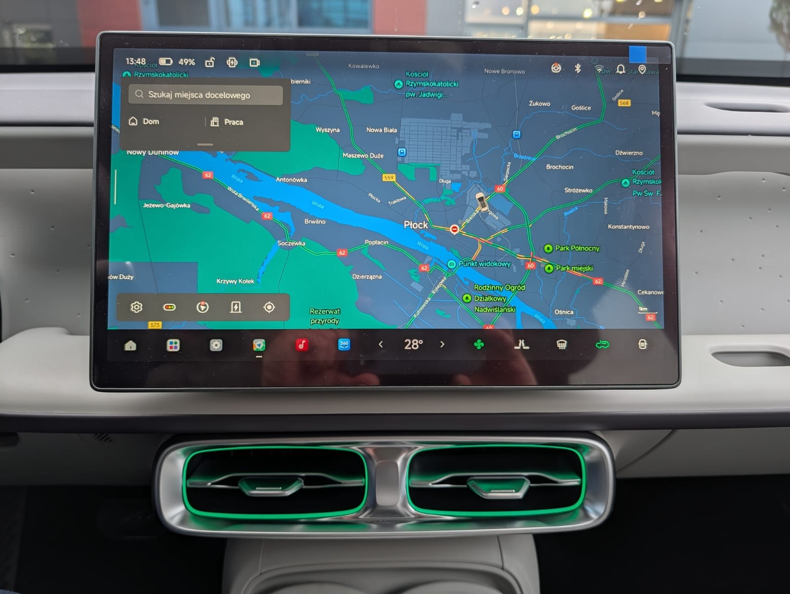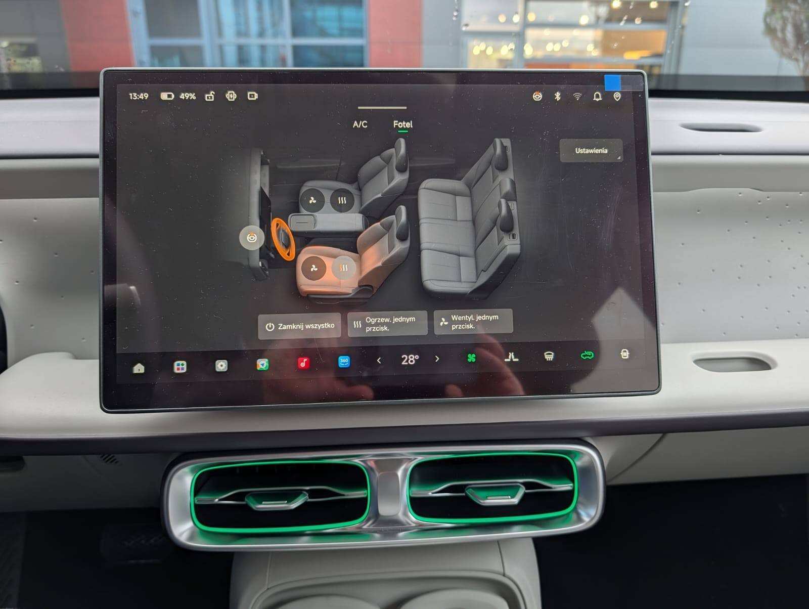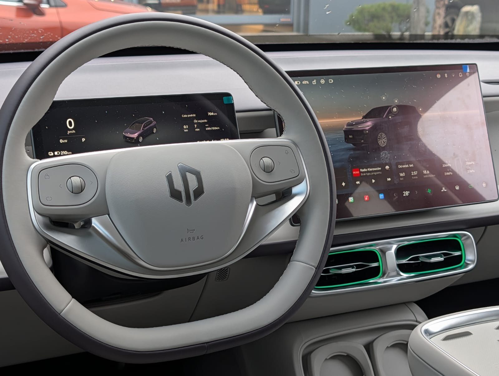 - Centralny ekran dotykowy HD 14,6" z systemem Leap OS 4.0 Plus