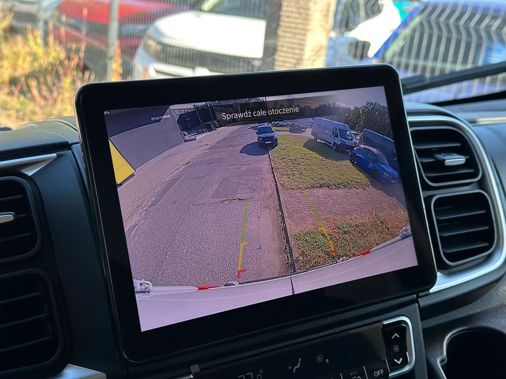 Kamera cofania z dynamicznymi kolorowymi liniami wyznaczającymi trajektorię ruchu pojazdu