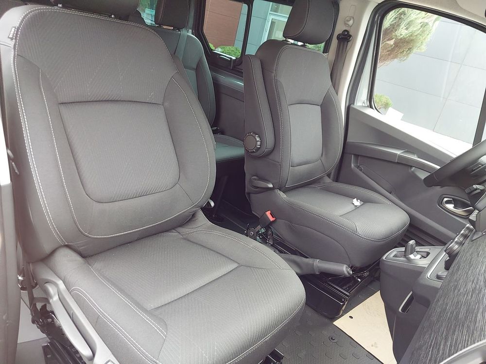 - Pojedynczy fotel pasażera z manualną regulacją wysokości, podparcia lędźwiów i podłokietnikiem