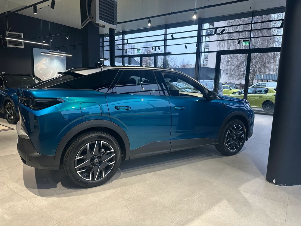 w kolorze czarnym Perla Nera, Dywaniki podłogowe z przodu i z tyłu (logo GT), Elektryczne sterowanie drzwi bagażnika,Elektryczne sterowanie szyb z przodu i z tyłu, Felgi aluminiowe 19" Breda, opony 225/55 R19 103V, Fot. kierowcy: ręczna regulacja wzdłużna, wysokości, pochylenia oparcia, odcinka lędźwiowego; podgrzewany, Kierownica ze skóry licowej z ozdobnymi przeszyciami i logiem GT, wielofunkcyjna, Klimatyzacja elektroniczna dwustrefowa, Klimatyzacja elektroniczna dwustrefowa, Lusterka zewnętrzne elektrycznie składane ze światłem powitalnym, diody ostrzegające o przeszkodzie w martwej strefie, pochylanie podczas cofania, Lusterko wewnętrzne elektrochromatyczne, bezramkowe, Pedały z aluminiowymi nakładkami, Peugeot i-Connect Advanced: Radio DAB, BlueTooth, bezprzewodowy Apple Carplay/Android Auto, Peugeot Connect SOS/Assistance, Wbudowana nawigacja, Podgrzewanie kierownicy, Podłoga bagażnika z