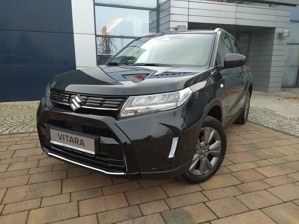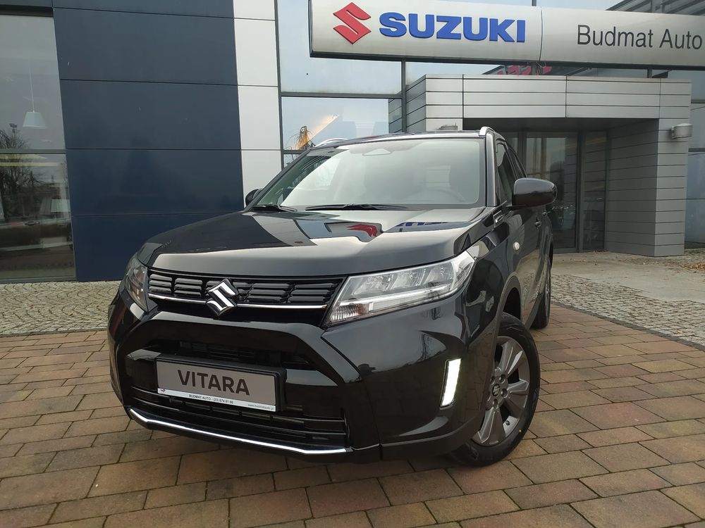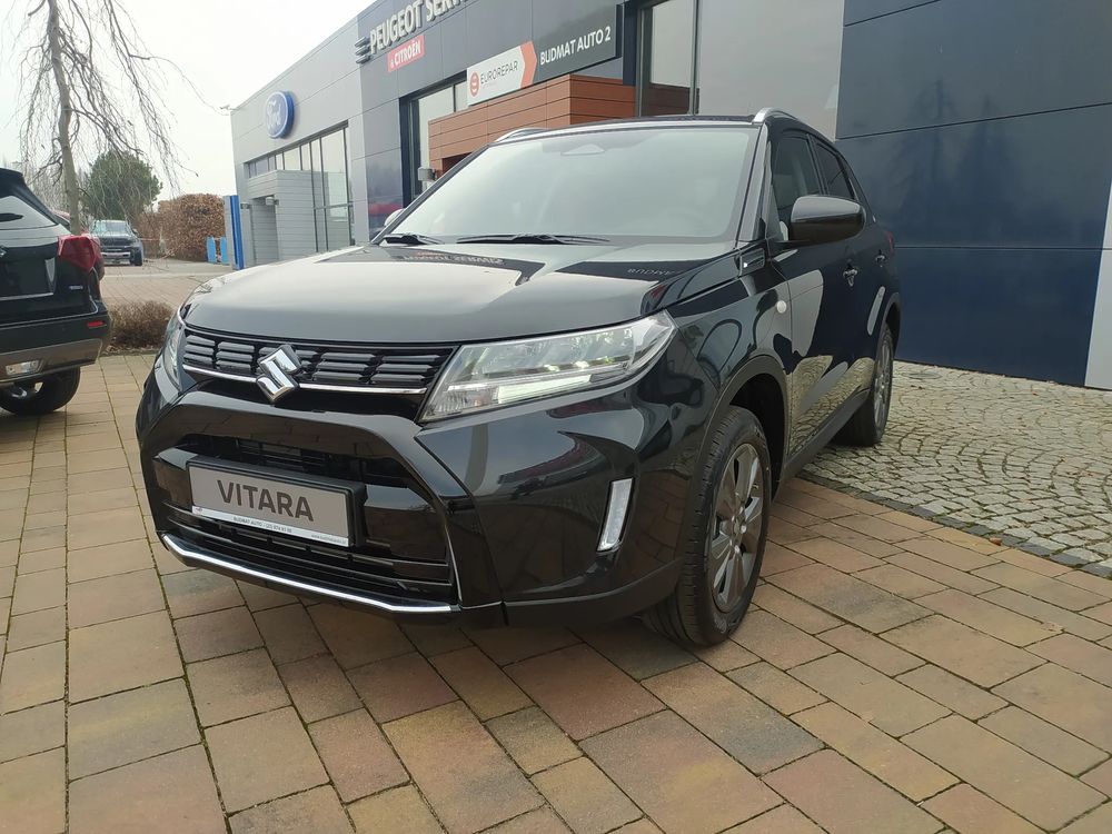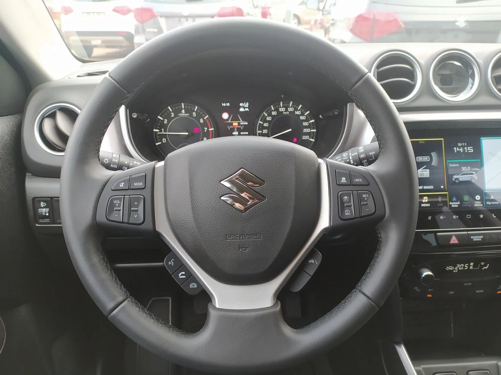 Suzuki Vitara FL, wersja PREMIUM PLUS, silnik 1.4 mHybrid 129 KM, Manualna skrzynia biegów 6-biegowa, bogate wyposażenie standardowe, m.in. Tempomat aktywny, Kamera cofania, Czujniki parkowania tylne, Ekran multimedialny 9'', Nawigacja, Światła LED, Podgrzewane fotele, Alufelgi 17", Fabrycznie przyciemniane szyby, Aktywne czytanie znaków drogowych
