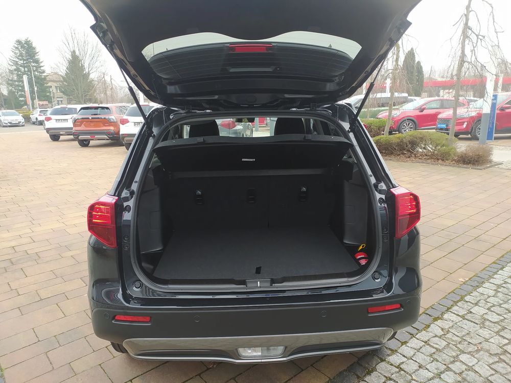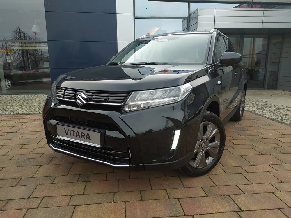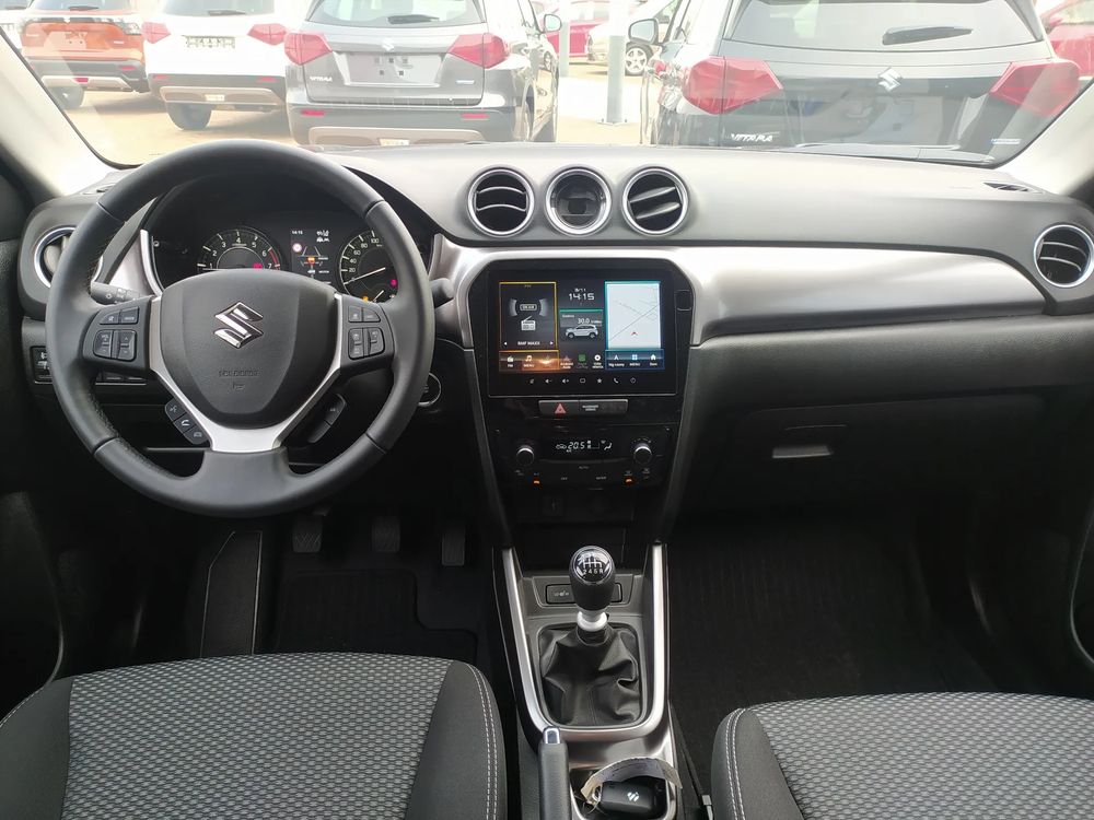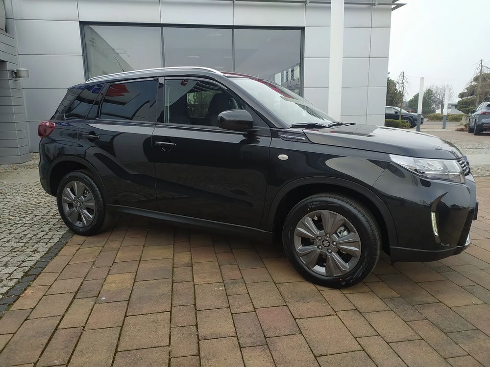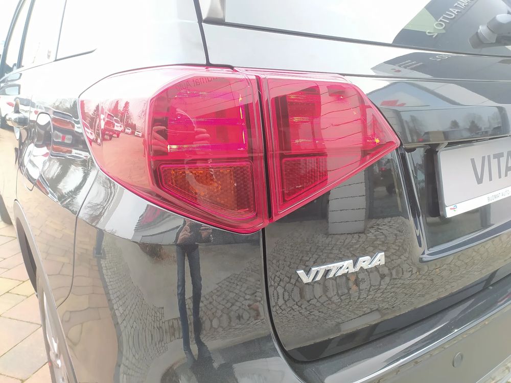 Suzuki Vitara FL, wersja PREMIUM PLUS, silnik 1.4 mHybrid 129 KM, Manualna skrzynia biegów 6-biegowa, bogate wyposażenie standardowe, m.in. Tempomat aktywny, Kamera cofania, Czujniki parkowania tylne, Ekran multimedialny 9'', Nawigacja, Światła LED, Podgrzewane fotele, Alufelgi 17", Fabrycznie przyciemniane szyby, Aktywne czytanie znaków drogowych