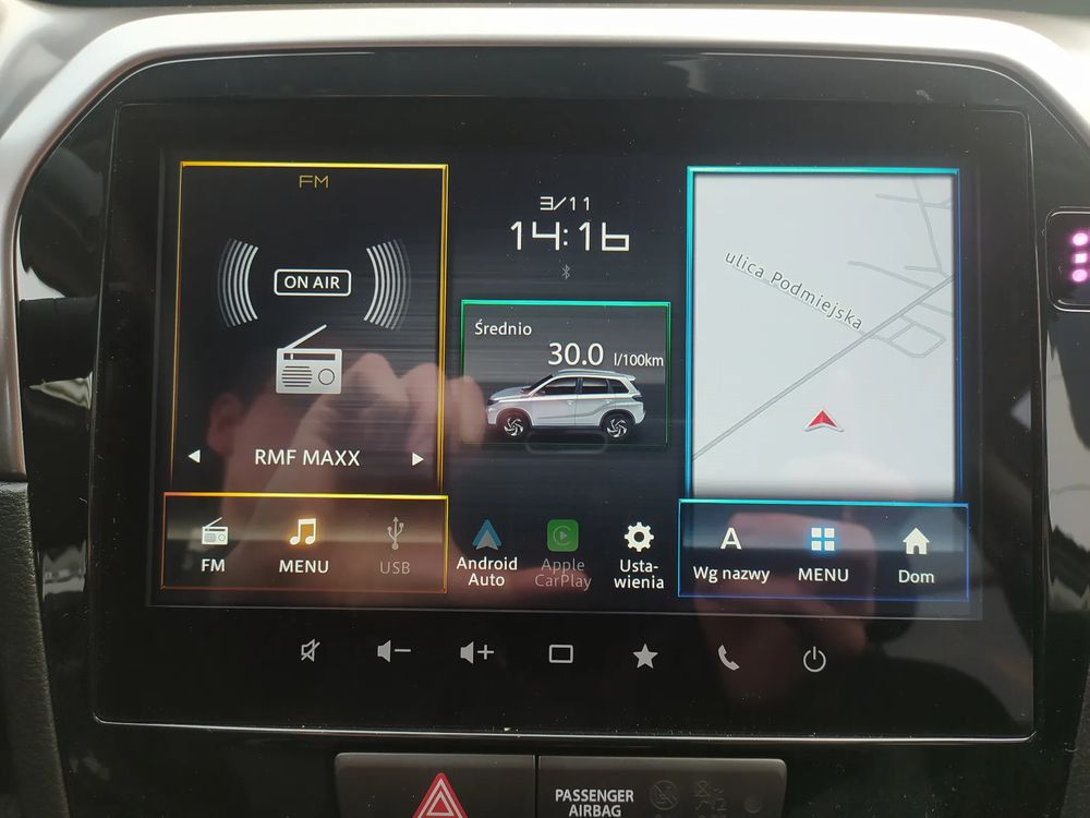• System multimedialny z ekranem dotykowym 9",wbudowaną nawigacją oraz zestawem głośnomówiącym