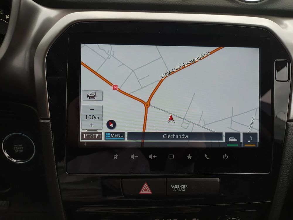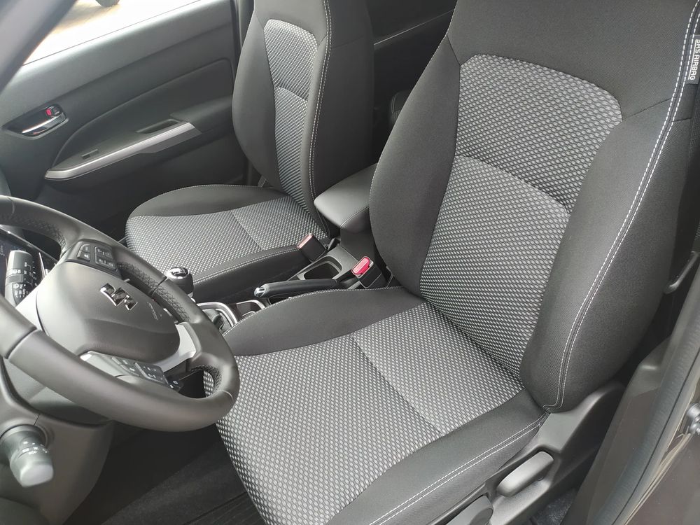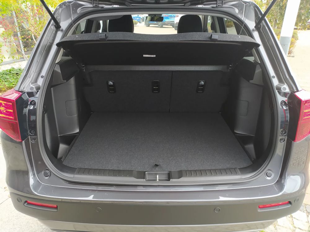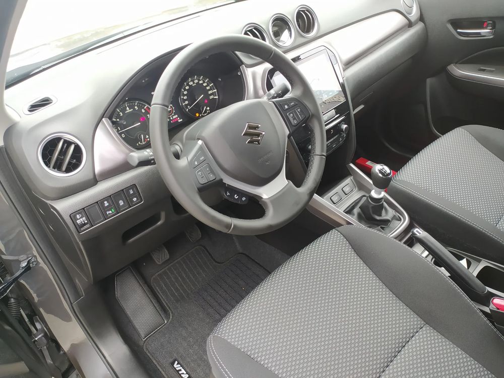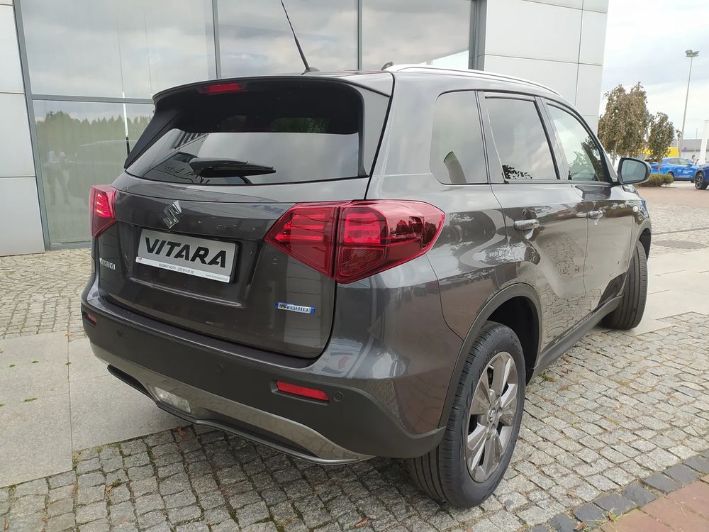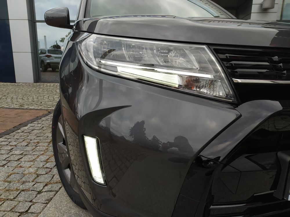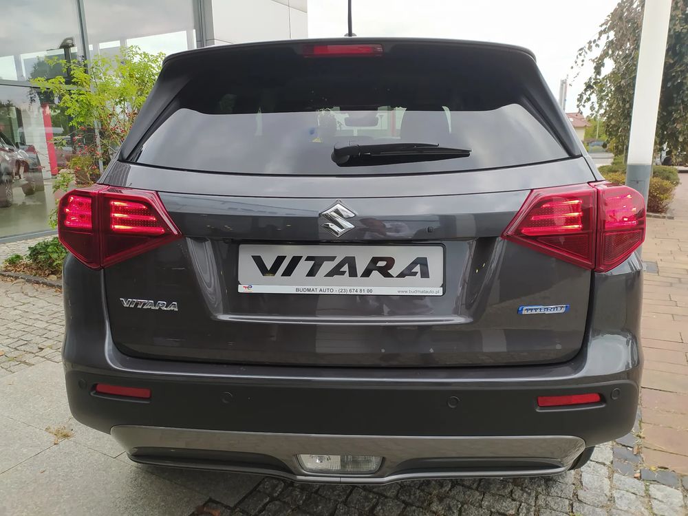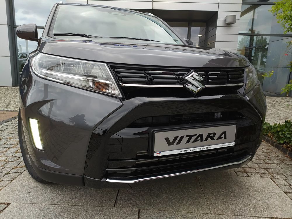 Suzuki Vitara FL, wersja PREMIUM PLUS, silnik 1.4 mHybrid 110 KM, Manualna 6-biegowa skrzynia biegów, bogate wyposażenie standardowe, m.in. Tempomat aktywny, Kamera cofania, Czujniki parkowania tylne, Ekran multimedialny 9'', Nawigacja, Światła LED, Podgrzewane fotele, Alufelgi 17", Fabrycznie przyciemniane szyby, Aktywne czytanie znaków drogowych