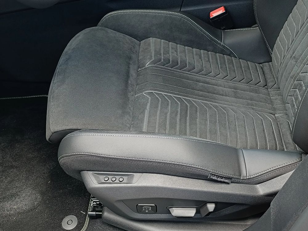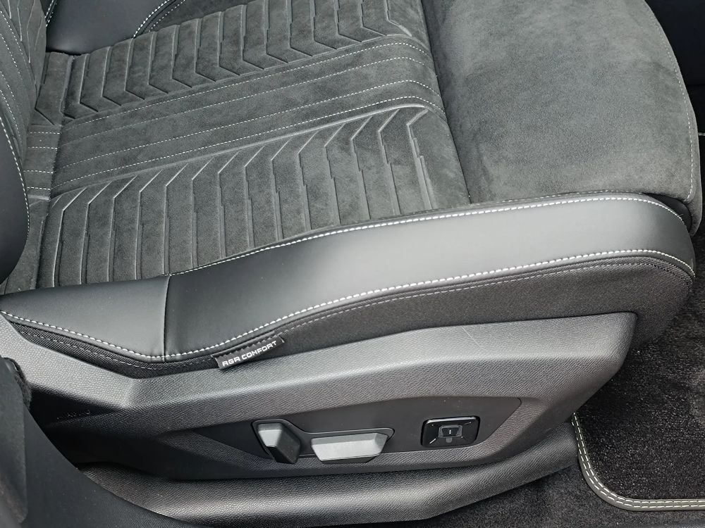 - Fotel kierowcy i pasażera AGR*: elektryczna regulacja wzdłużna, wysokości, pochylenia oparcia, nachylenia siedziska; pneumatyczna odcinka lędźwiowego i podparć bocznych; ręczna regulacja długości siedziska; podgrzewany, z masażem
