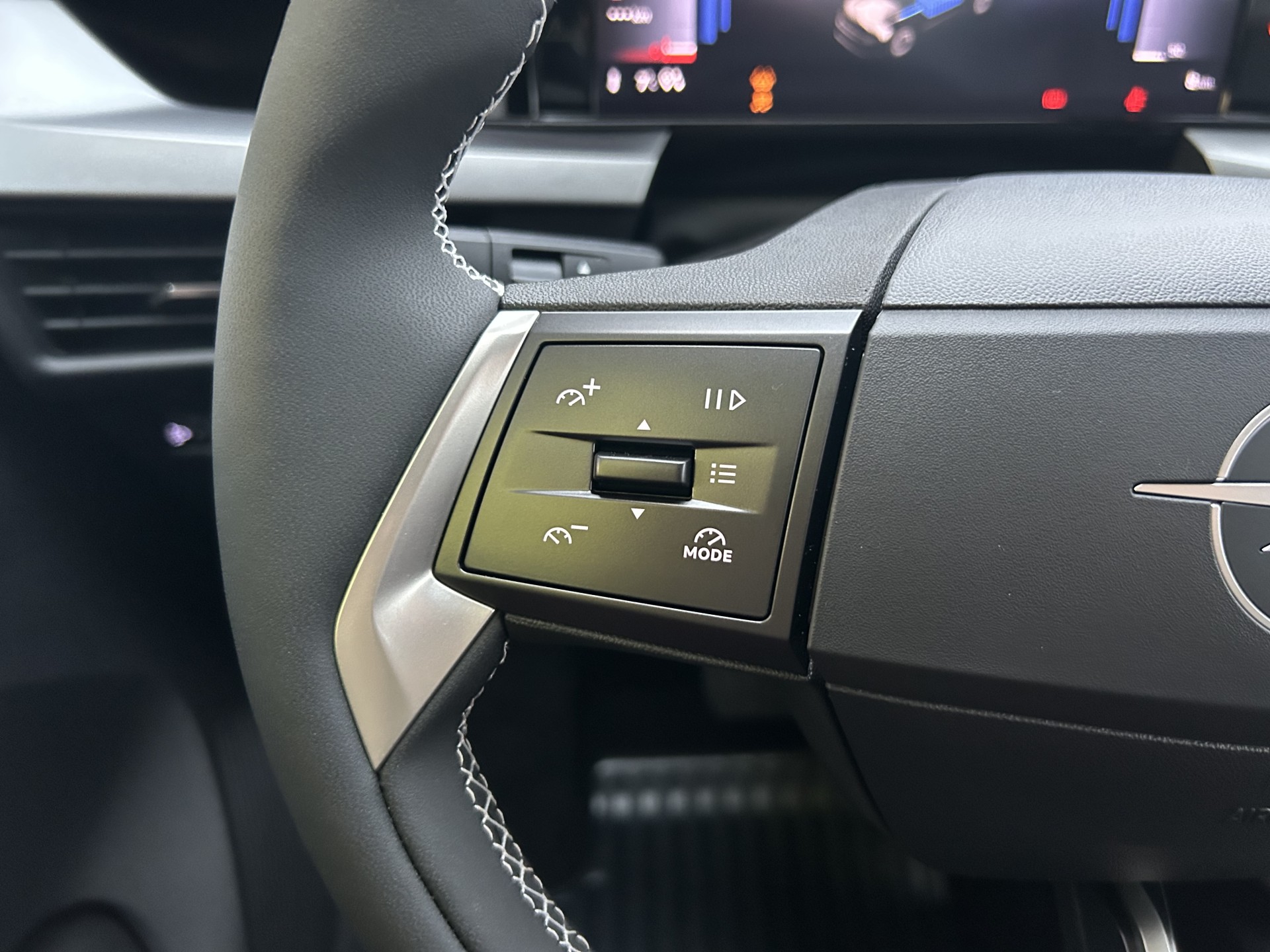 -Koło kierownicy pokryte skórą ekologiczną, z przyciskami sterowania, spłaszczone u góry i dołu