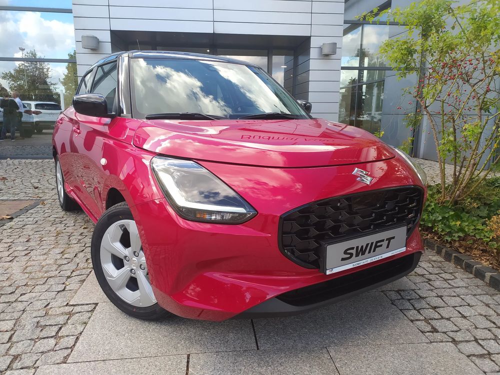 Nowa generacja Suzuki Swift, wersja PREMIUM PLUS, silnik 1.2 mHybrid 83 KM, Manualna skrzynia biegów, bogate wyposażenie standardowe, m.in. Układ reagowania przedkolizyjnego, Kamera cofania, Czujniki parkowania, Podgrzewane fotele, Światła LED, Dotykowy ekran 9 (bezprzewodowy Android Auto)", Alufelgi 16", Fabrycznie przyciemniane szyby, Czytanie znaków drogowych, Lakier metalizowany.